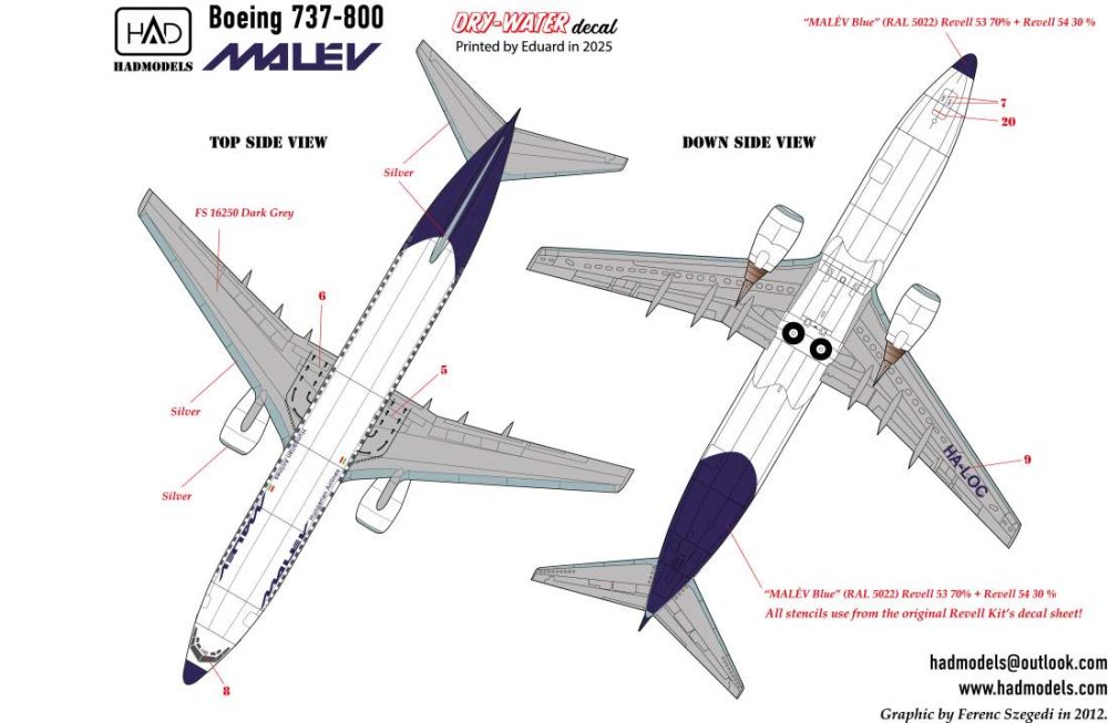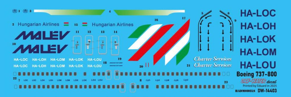 1/144 Decal Boeing 737-800 MALÉV (dry-water)