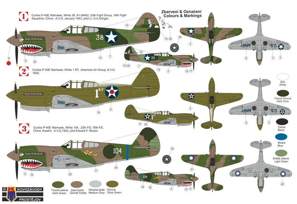 1/72 Curtiss P-40E Warhawk (3x camo)